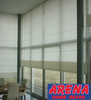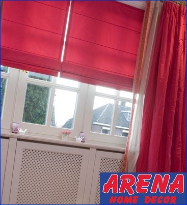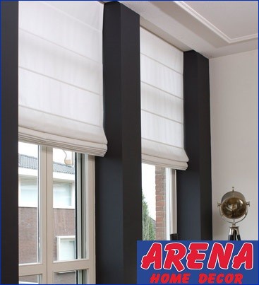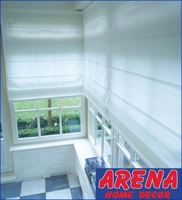 Vouwgordijnen kunnen worden verfraaid met een contrasterende kleur board, of de onderlijst kan worden afgewerkt met kristallen.